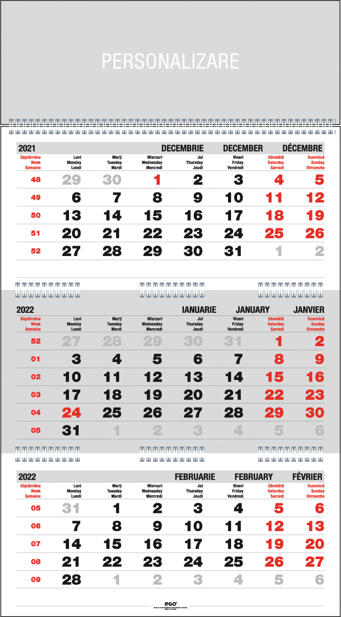 imprimare: 2 culori (roșu + negru) • finisare: spiră metalică albă