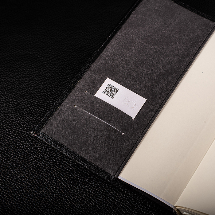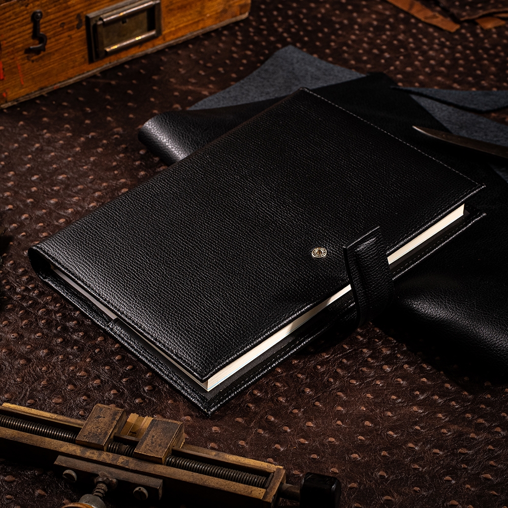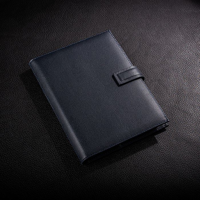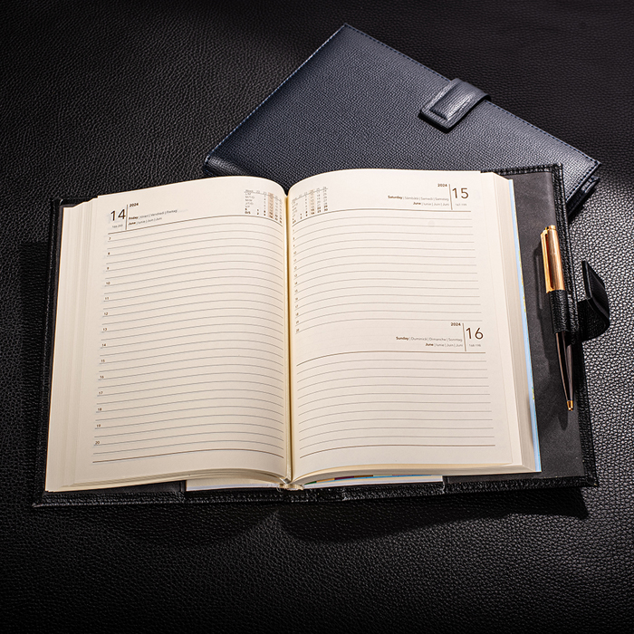 Agendă SAKURA cu copertă buretată din piele naturală texturată, închisă cu clapă din piele, suport pentru pix.